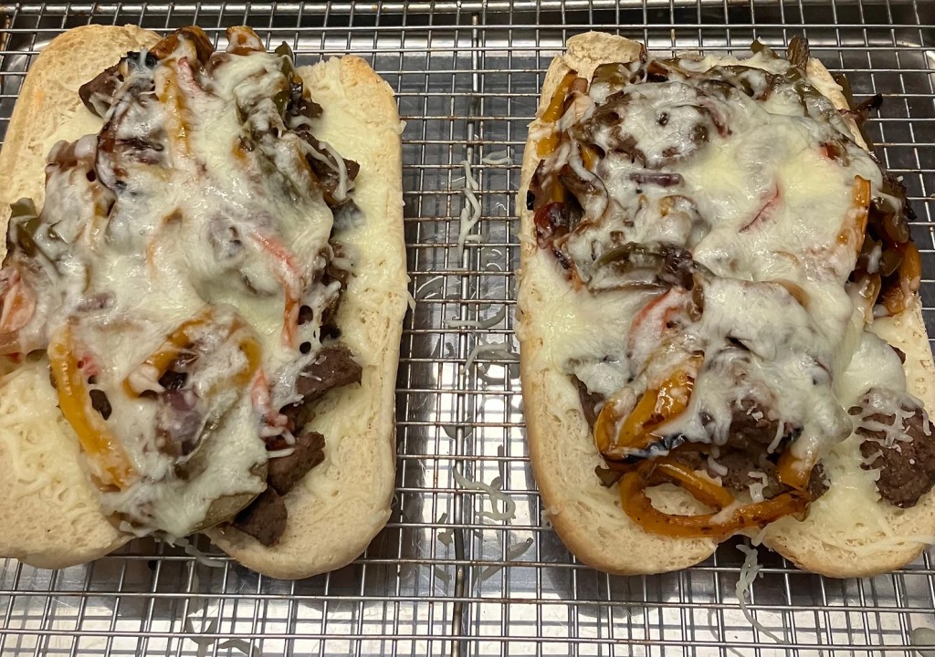 Once the cheese has begun to melt, remove the hoagie buns from the broiler and add the meat mixture and vegetable mixture to each hoagie, topping them with additional cheese. Again, you can use shredded or sliced, but if you using sliced two pieces is about right. Return the hoagie buns to the broiler for about another 5 minutes or until the cheese is melted. Remove the Philly’s from the broiler and serve immediately.