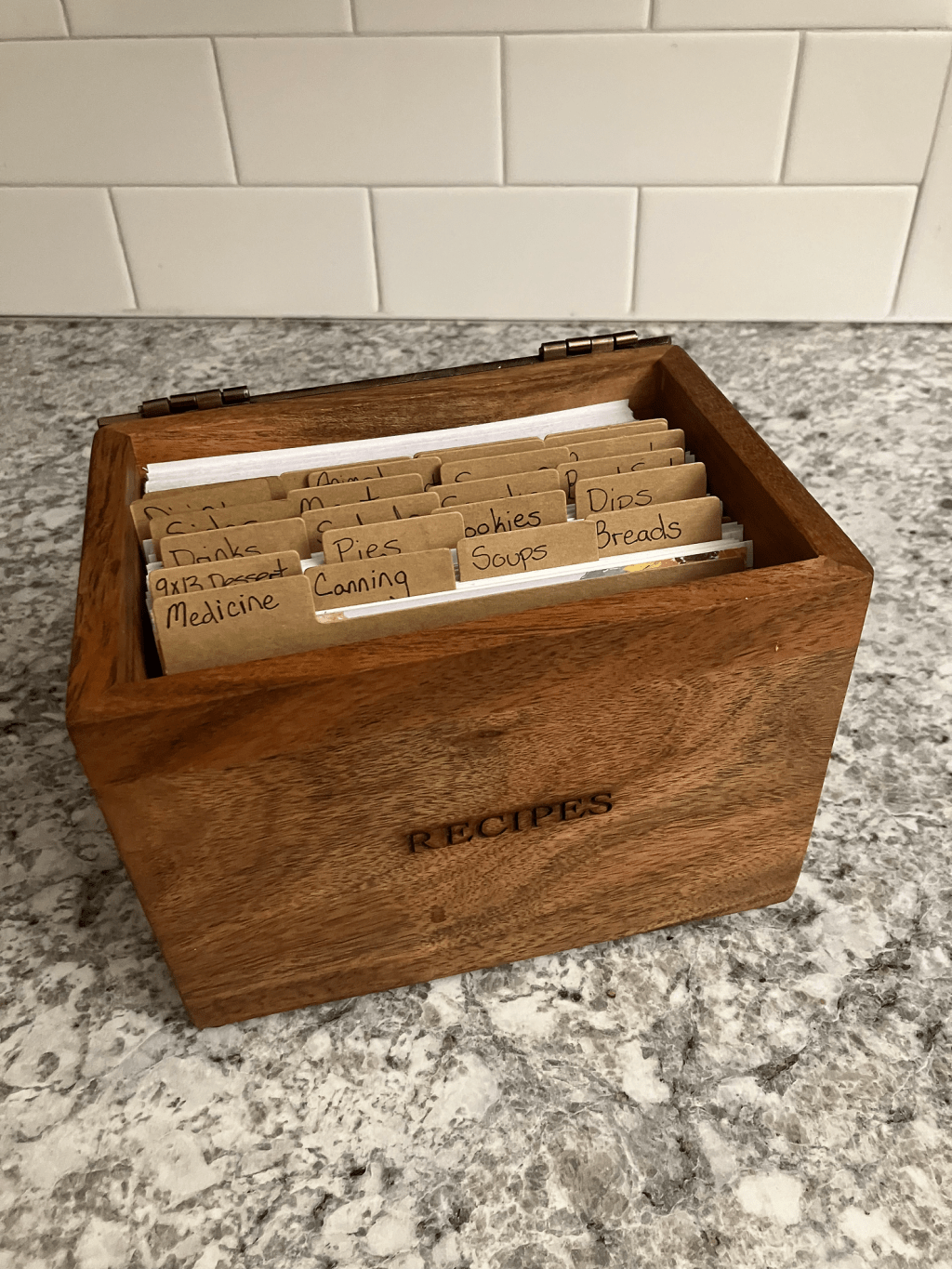 I chose the Notes app or recipe box for this step because it makes it easy to take notes on the recipes, crossing things out and adding things as I try new ingredients, substitutions, and cooking methods. I originally started in the Notes app, but have recently been working on minimizing my screen time as well as I have found it easier to edit recipes to my liking when I use pencil and paper. Since I have gone to putting recipes more in a recipe box rather than on the Notes app, I have needed more recipe cards. However, because recipes do not live in my recipe box forever, I didn’t want to spend money on fancy looking recipe cards. Instead, I have found that large index cards work just as well and actually give me more room to write when I have a recipe with lots of ingredients or instructions. Recipes often stay in this stage of the process where they are being refined for several months, until a final draft recipe is moved on to my recipe binder.