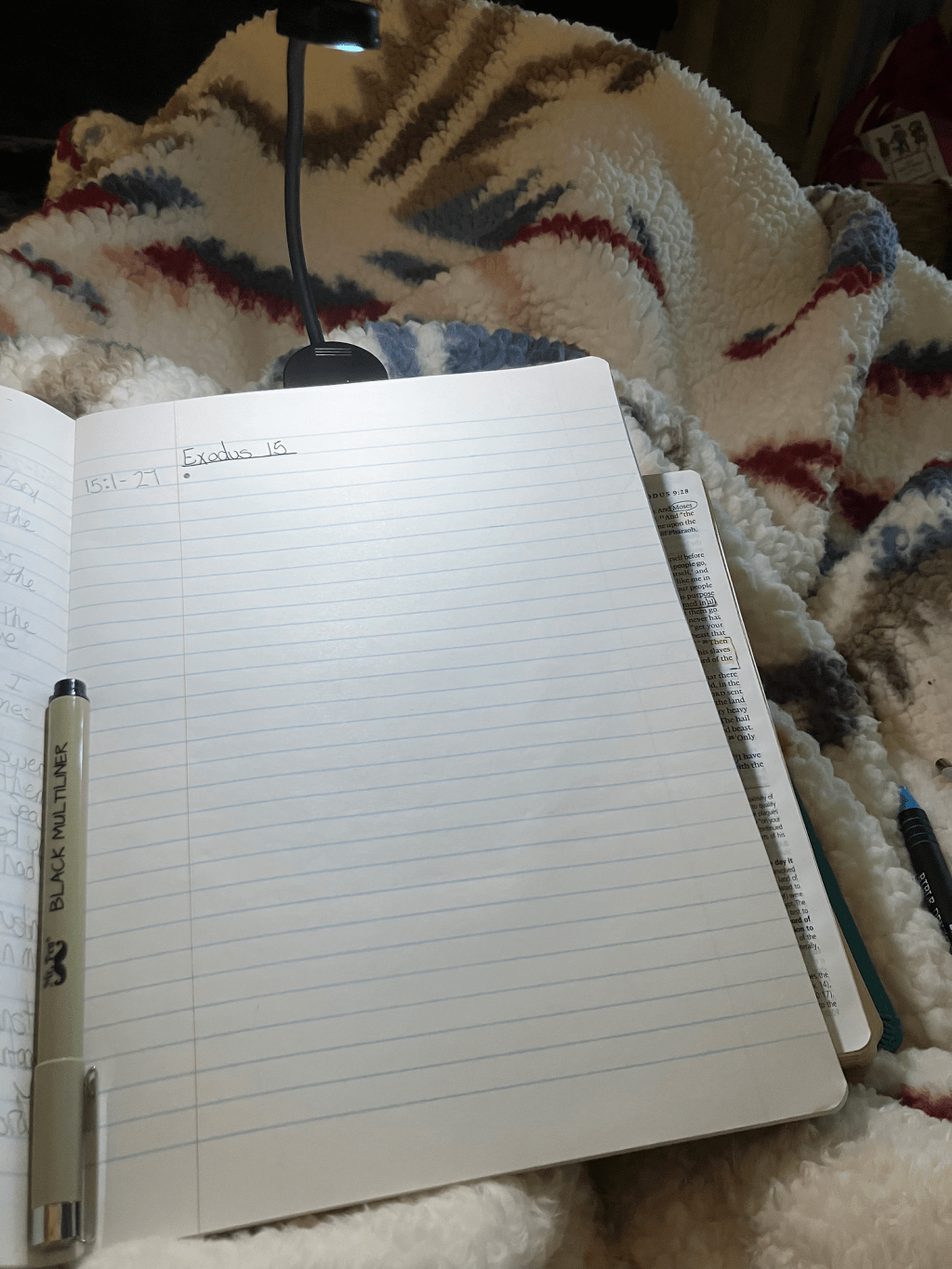 Taking notes of key themes, terms, trends, lessons, or other things that stick out to me while I read scripture helps me to stay focused, but so does having a plan for all these notes. I am by nature a notetaker who wants all the details, but this made my notes messy and distracting to I had to sit down and figure out a note-taking plan that would help me keep all the elements organized. For me this means I keep general themes, terms, timelines, trends, and lessons of the book of the Bible I am reading in one notebook while I keep things I want to research more or terms that I need to dig deeper into in the original Greek or Hebrew in another notebook as a list.