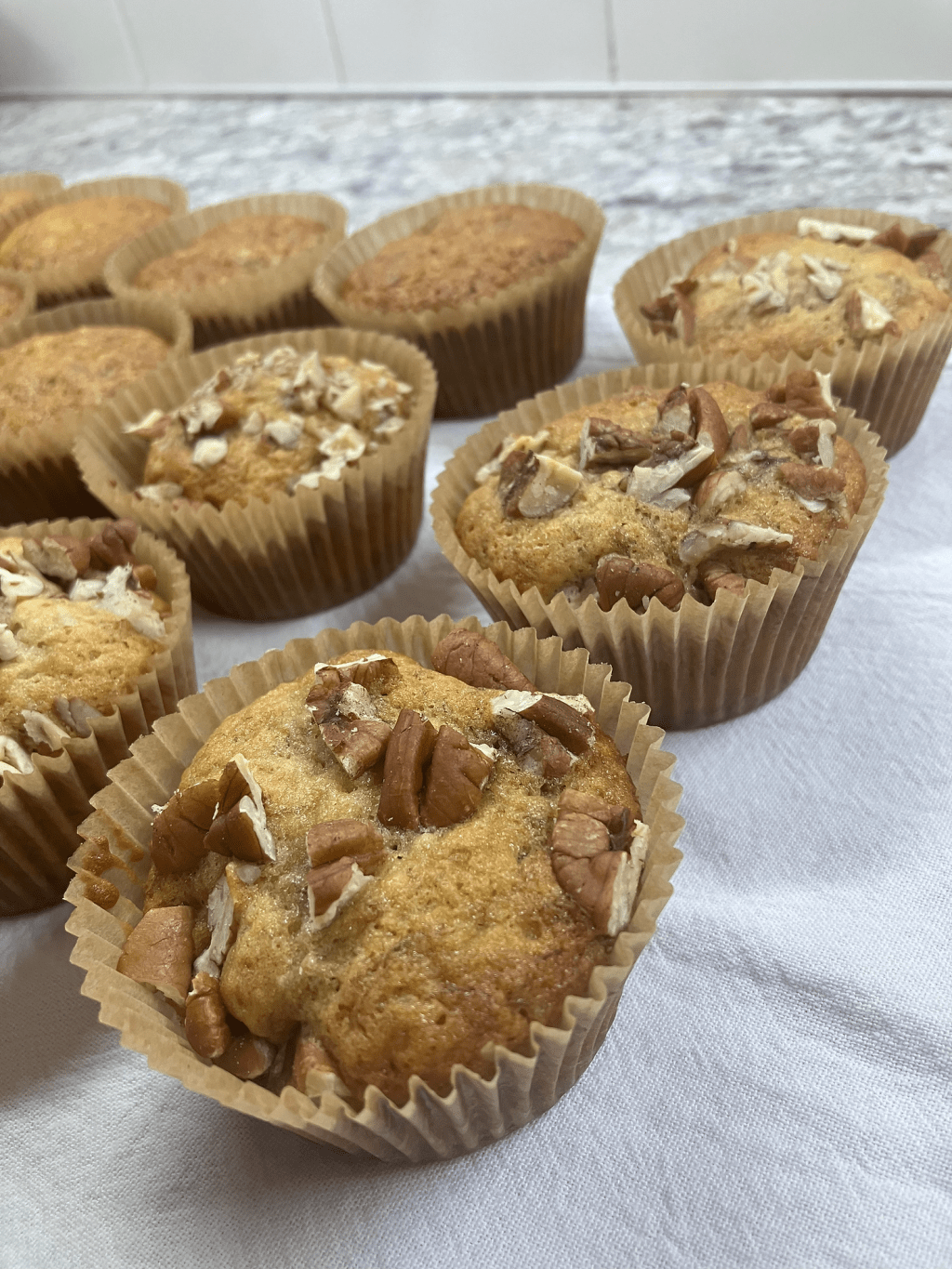 One of my favorite cool weather or fall treats is muffins. And one of my favorite muffins is banana or banana nut. These are great to add to a snack, your breakfast, or as a dessert to any meal.