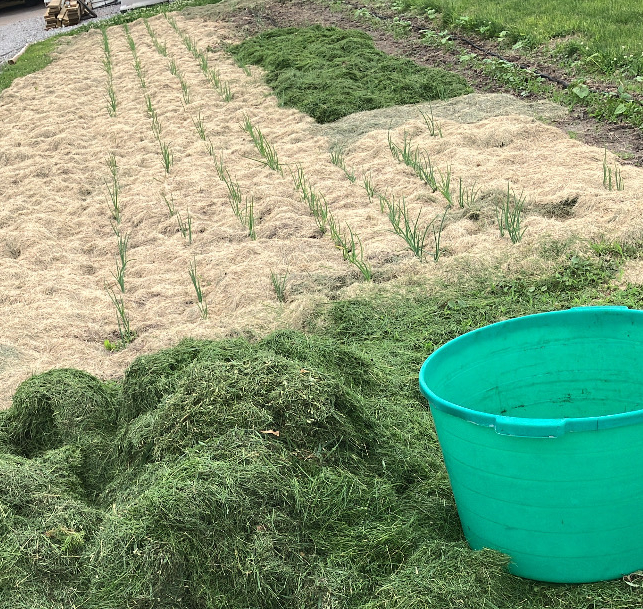 Mulch not only can keep weeds under control but it helps the soil to hold unto water better reduce the amount of watering you must do. There are a variety of mulching materials, but my favorite is grass clippings.