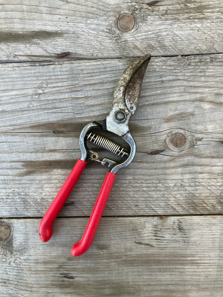 My personal favorite is almost always a good, high-quality pair of scissors because they fit in my hand so much more comfortably. Scissors can be used to harvest everything from peppers to okra to salad greens.