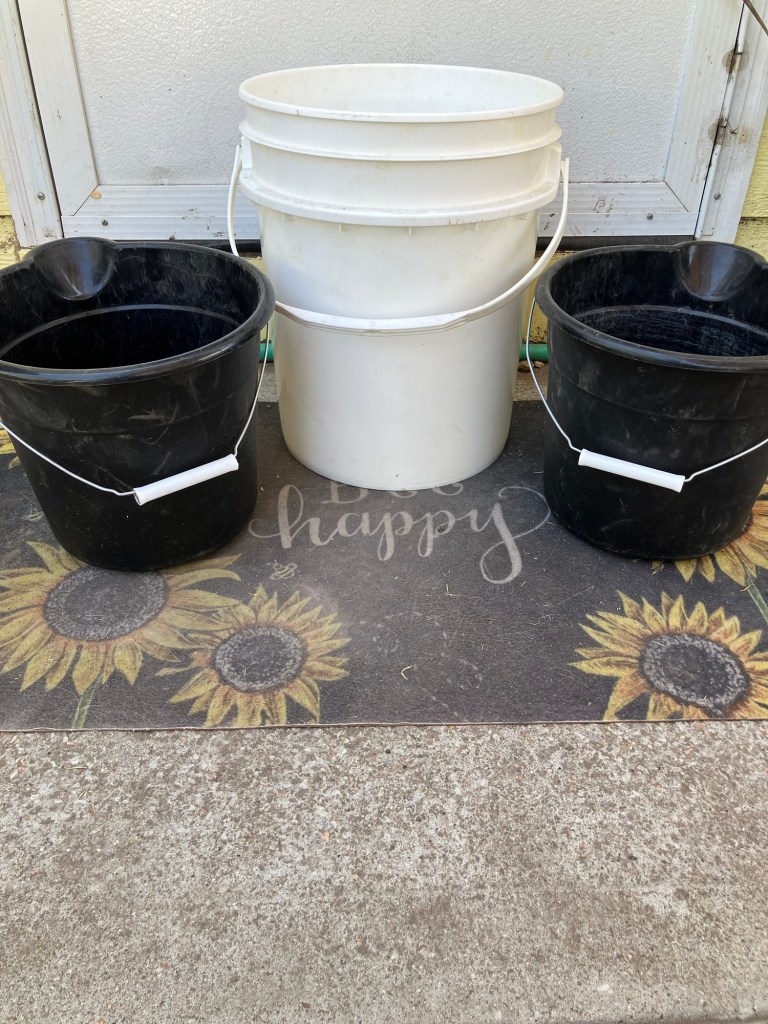 Buckets are great for harvesting most everything, but they are my favorite for potatoes and tomatoes when they are producing at maximum capacity.