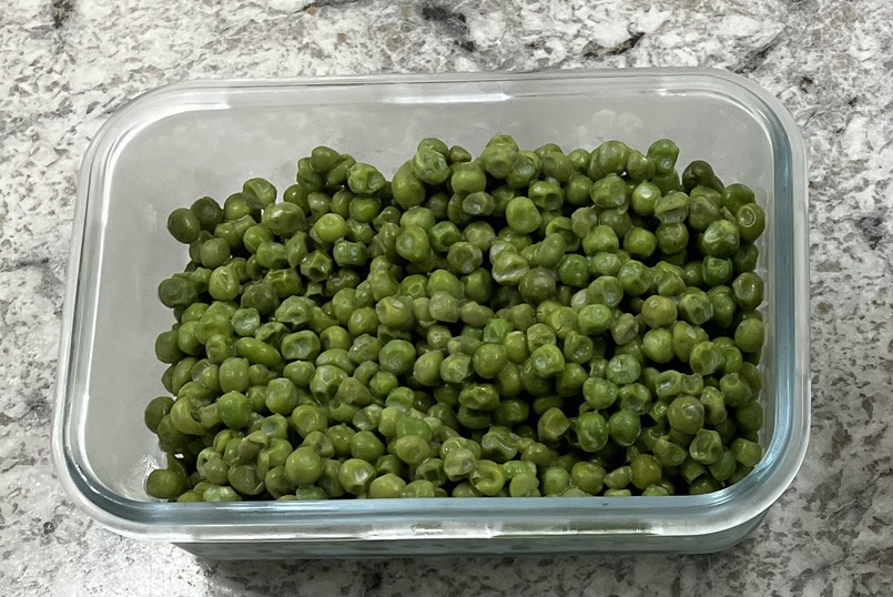 When the noodles are cooked, I will add the peas and cover for another 5 minutes to let them warm through before serving since they are already cooked.