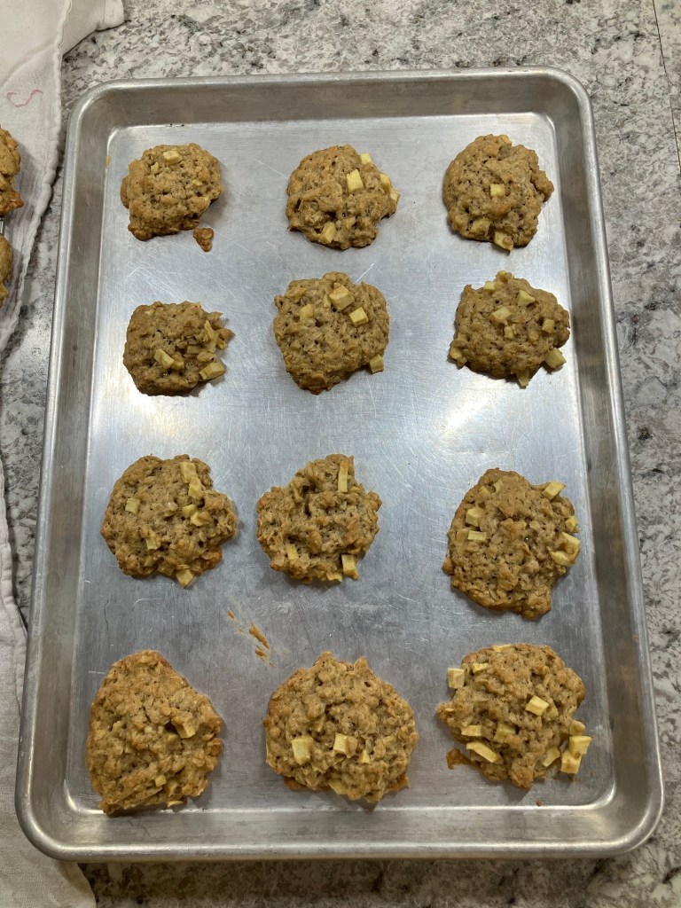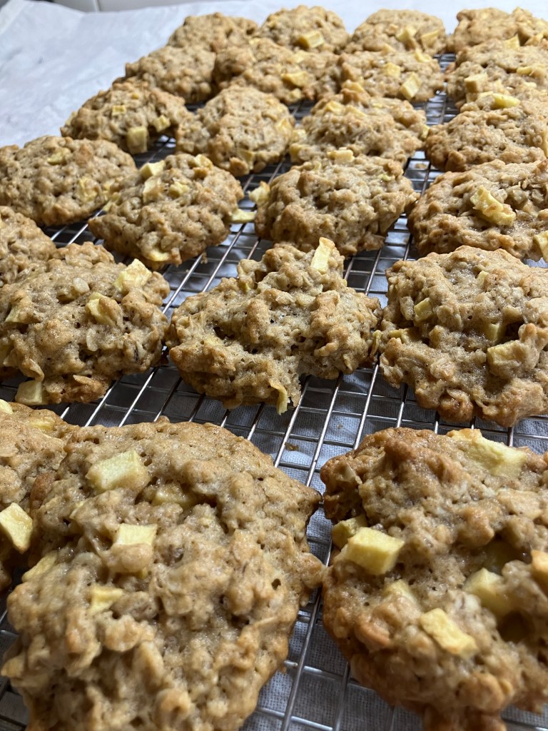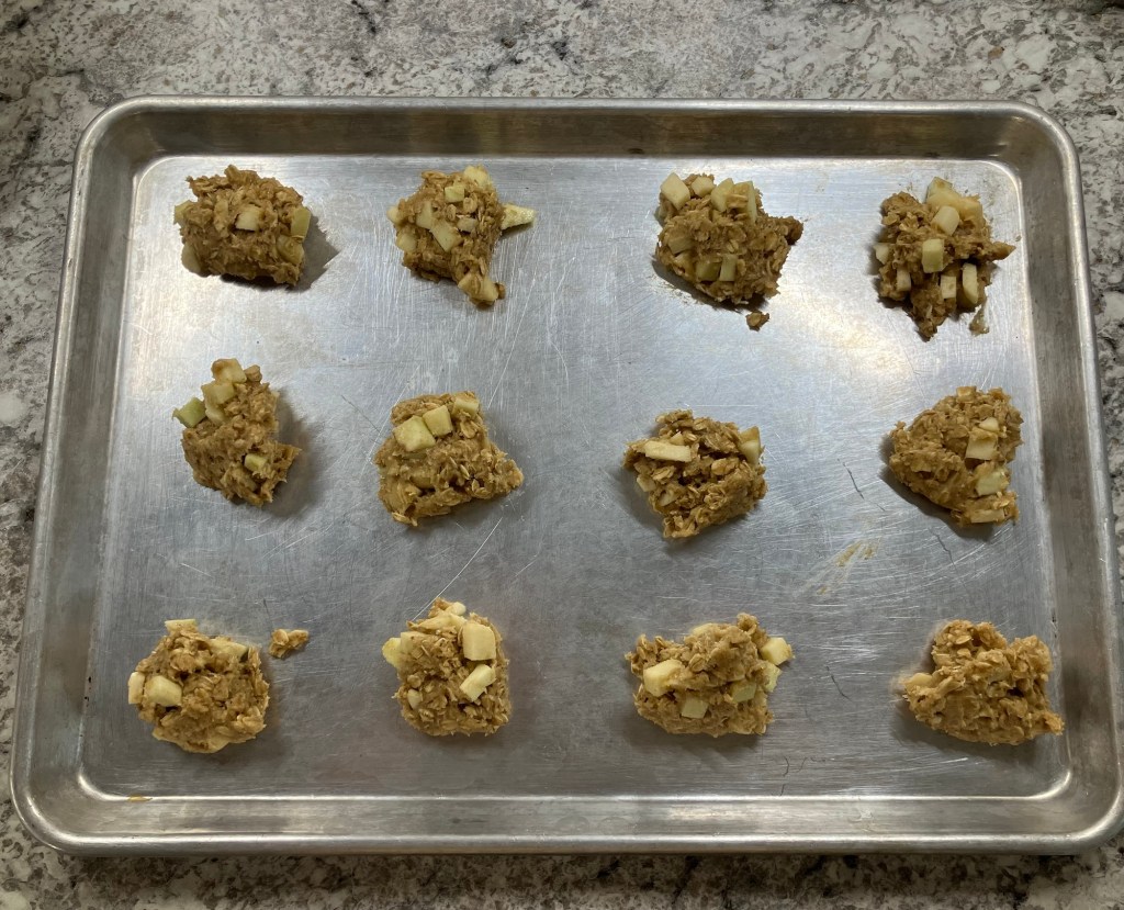 You can dice them whatever size you choose, but if you don’t want the apple chunks to be as noticeable you will need to dice them pretty small. The tool I referenced early has an option to dice them as small as a quarter-inch which I find makes them pretty unnoticeable in the cookies aside from flavor.