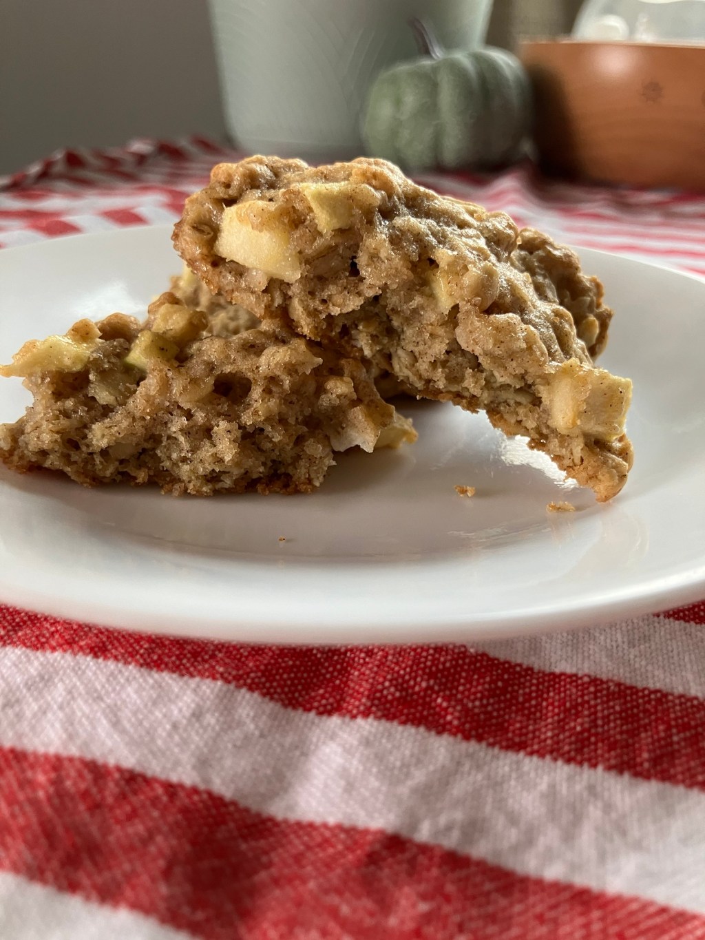After a conversation with a friend and some trial and error, I came up with an apple crisp cookie that my husband could not stop eating. I kept finding him with his hand in the cookie jar every time he was in the kitchen.