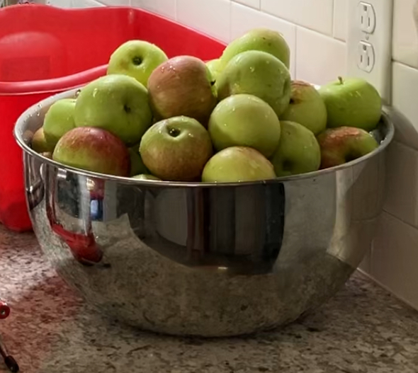 Our family uses apples from some neighbors that have a small orchard. So the first step for us is to go pick apples each year. This year I picked apples a couple different times throughout the year, but ended up picking approximately 4-5 bushels though we also made apple sauce with some of those apples.