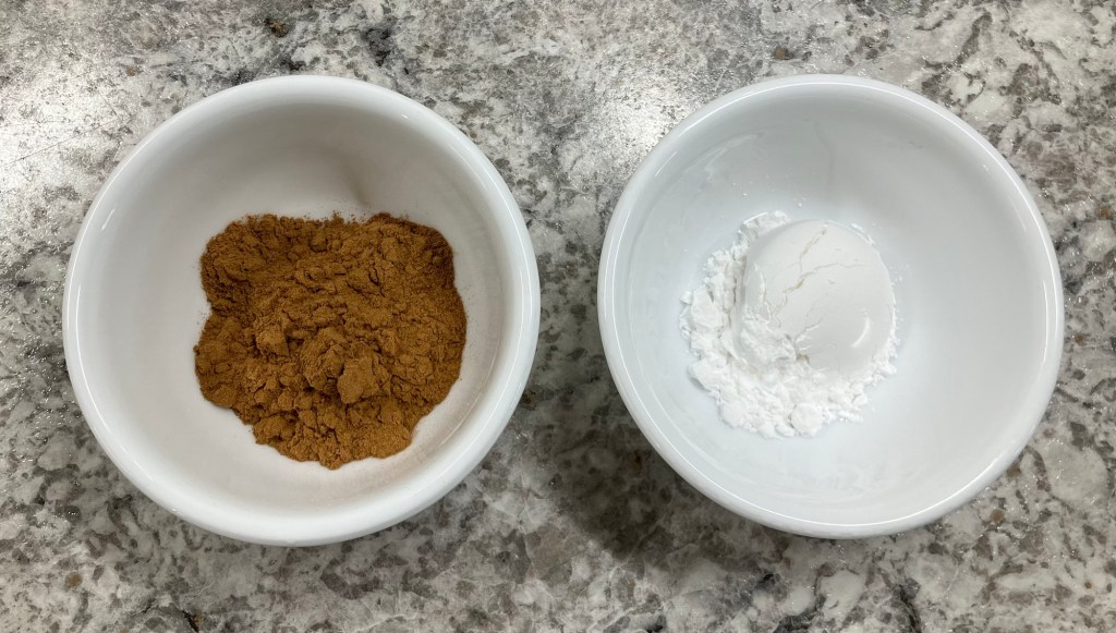 In a separate bowl, mix together equal parts powder sugar and ground cinnamon.