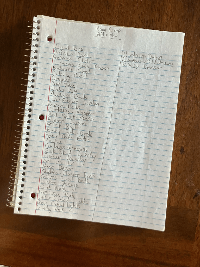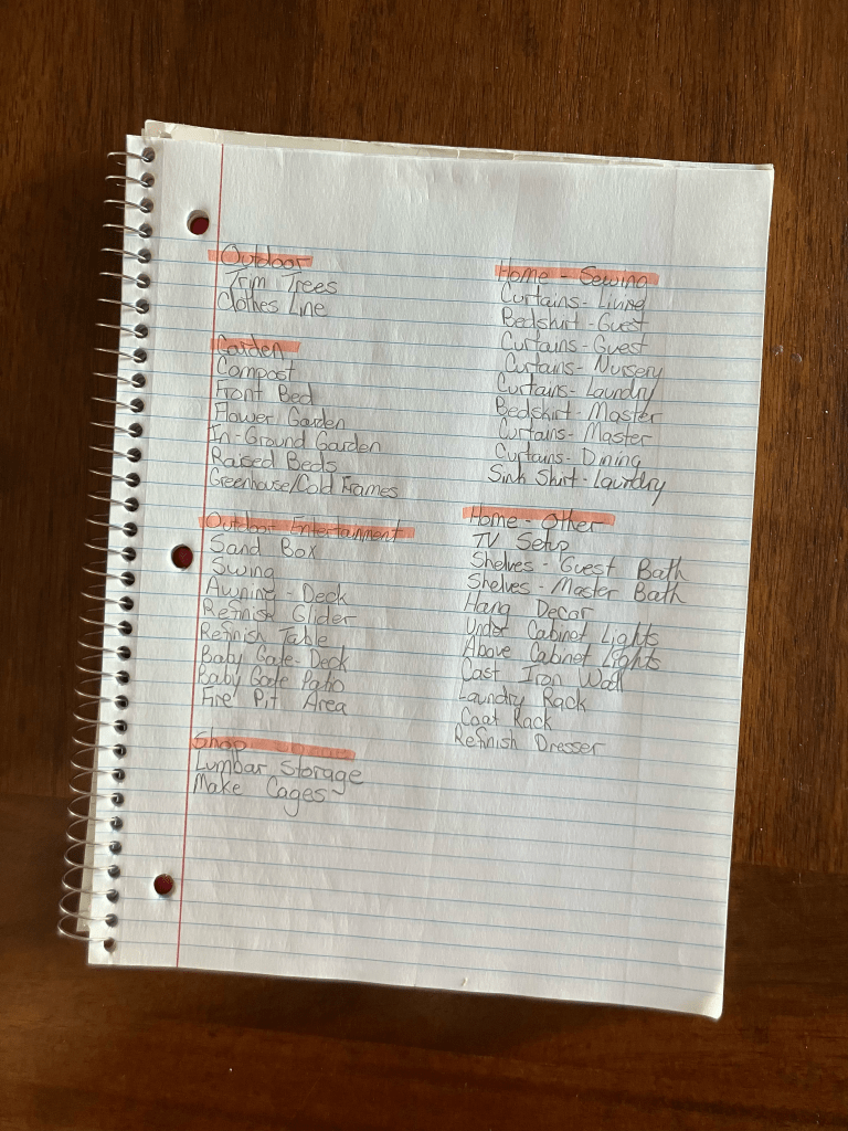 To help fight the overwhelm and keep us organized and on task, my husband and I sat down together to brain dump all the projects that we would like to do over the next couple of months or even years. We wrote down everything, no matter how big or small, so that we have a “master list” of projects.