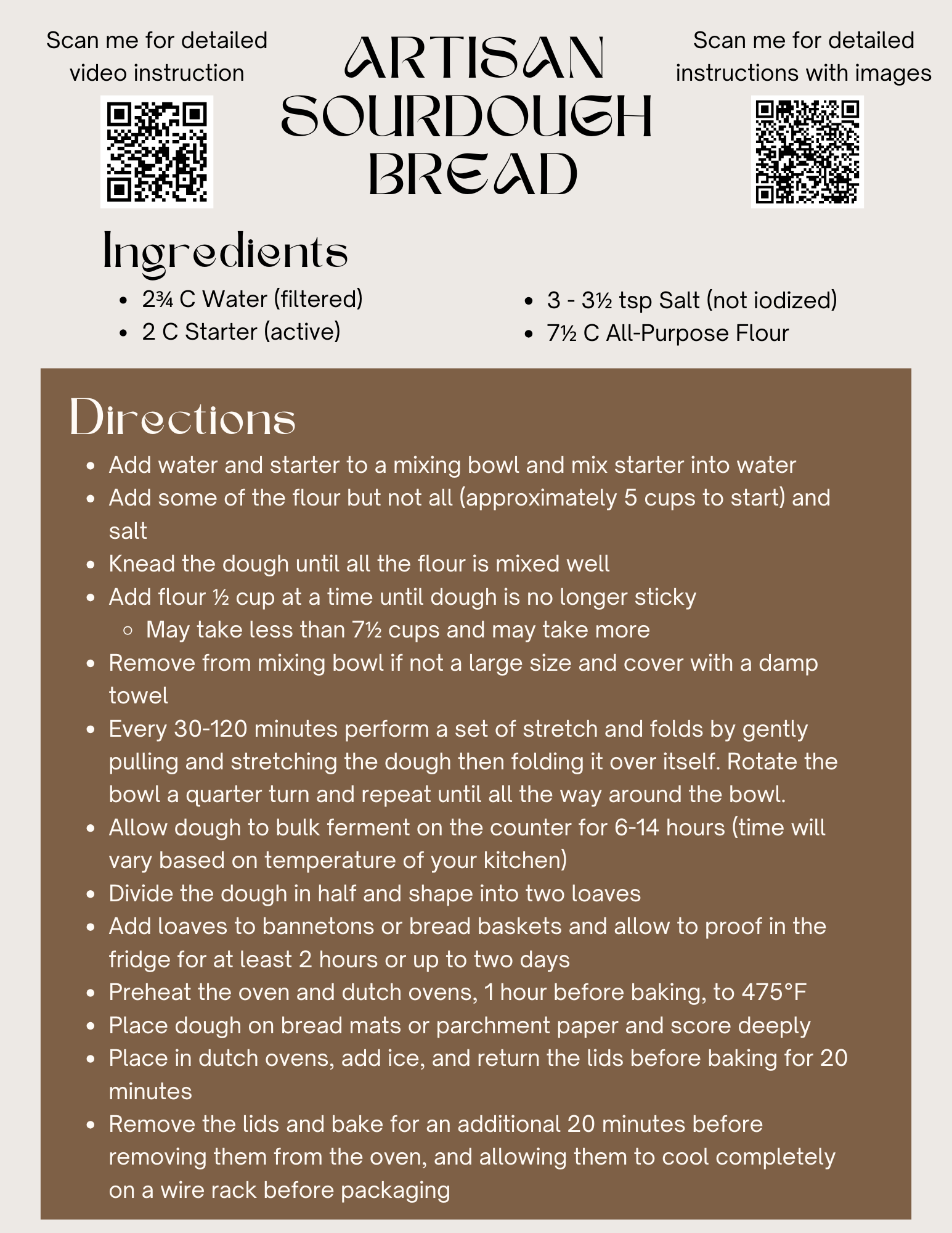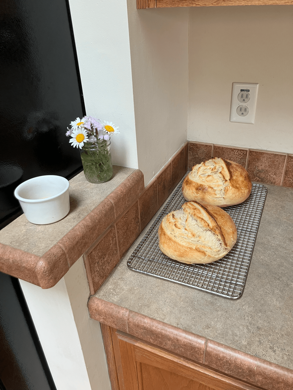 When the second round of 20 minutes has passed, remove the loaves from the Dutch ovens and place on a cooling rack until cooled completely before packaging.