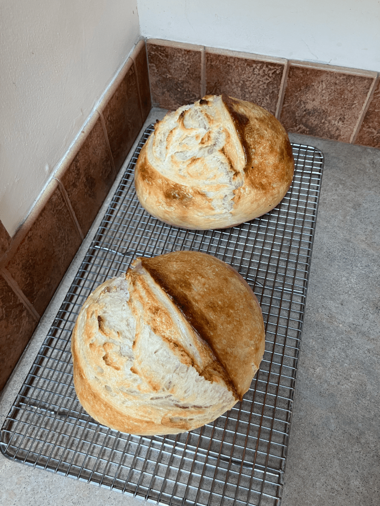 Over-proofing happens when your dough rises too long, losing structure and becoming flat or gummy. When this happens, the loaf is not a loss! It can be turned into focaccia bread or baked and made into croutons. Under-proofing is when it hasn’t risen enough, making a dense, heavy loaf. Timing is key!