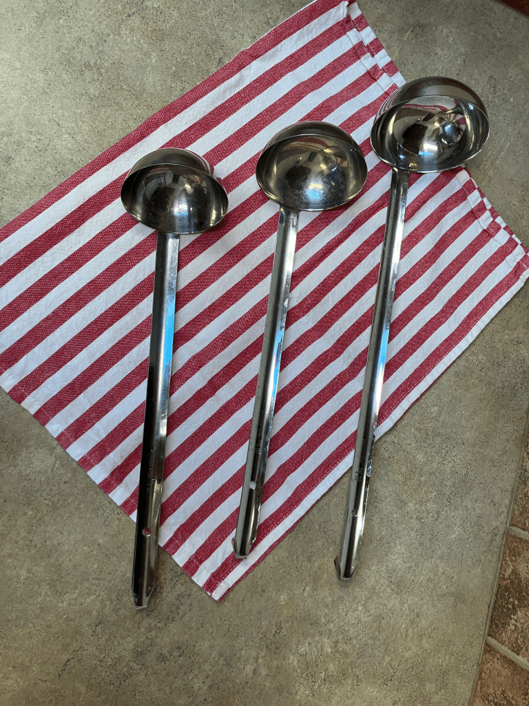 A ladle is a great tool for getting the product from the stock pot into the jars.  I love these stainless steal ones!