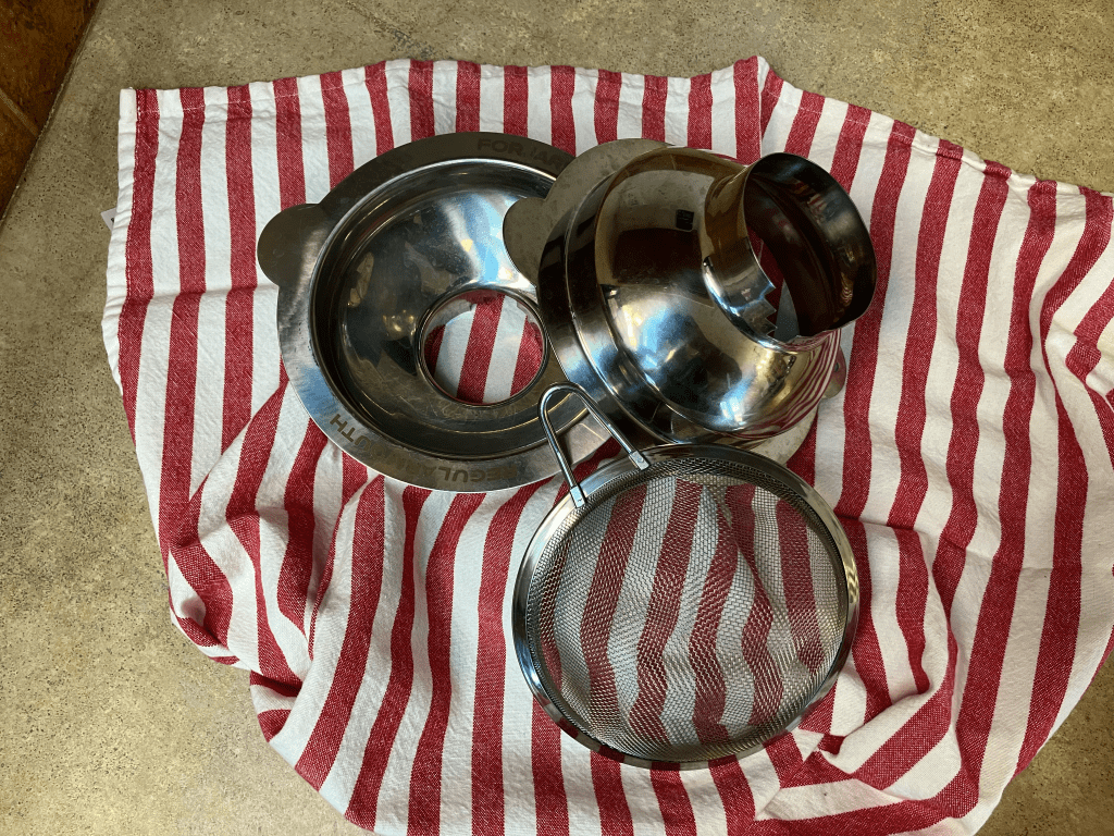 A funnel with a wide mouth makes filling jars mess-free.  I love this set of canning funnels from For Jars.  The set comes with a funnel for wide-mouth jars, a funnel for regular mouth jars, and a mesh strainer that sits right inside both of the funnels. These funnels are amazing because they come with headspace measurements right on the funnels!