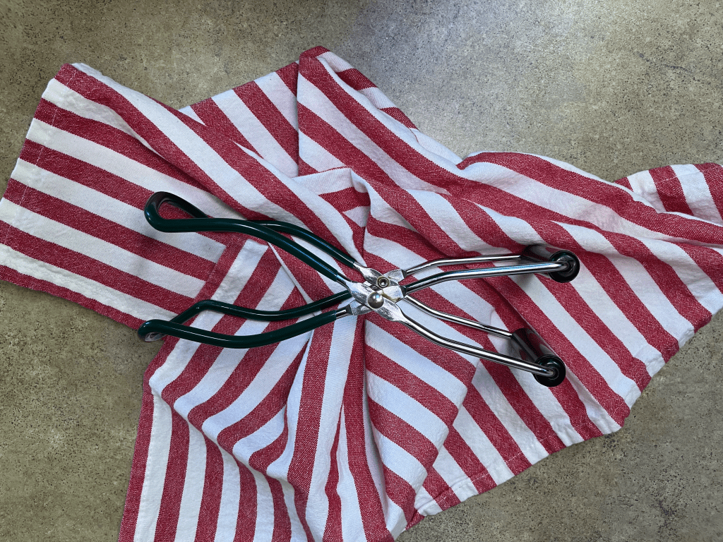 Trust me, you don’t want to fish hot jars out of boiling water with regular kitchen tongs. A jar lifter is a specialized set of tongs for handling hot jars to keep your hands safe.