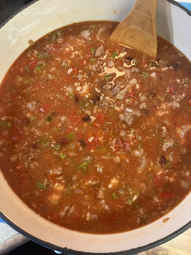 Reduce the heat to low and let it simmer for 5-10 minutes. This short simmer lets all those taco-inspired flavors meld together beautifully—the spices bloom, the salsa adds brightness, and the beans and rice make it extra hearty.